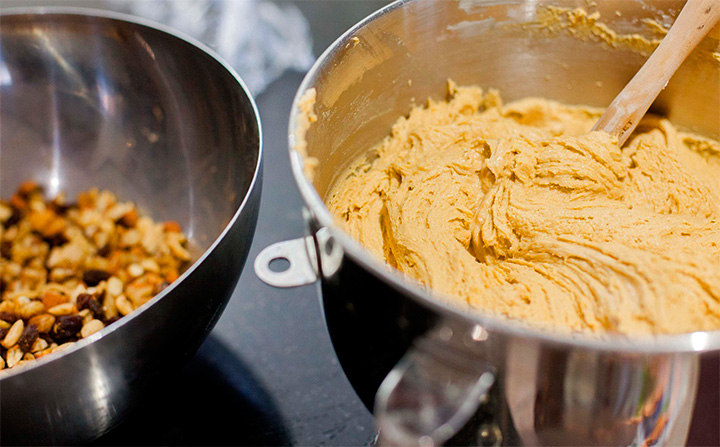 Verter en moldes de pan de pascua enmantequillados o forrados en papel encerado.